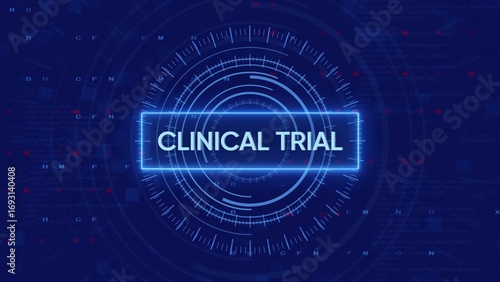 Obraz premium Digital HUD display with the words CLINICALTRIAL in a glowing blue rectangle...