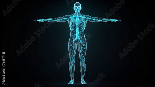 © Sadiur Rahman, Obraz premium Digital human body with glowing lines, representing future technology