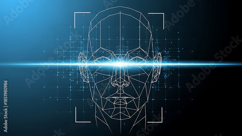 © Ana, Obraz premium Digital Human Face Wireframe Scanning Technology.