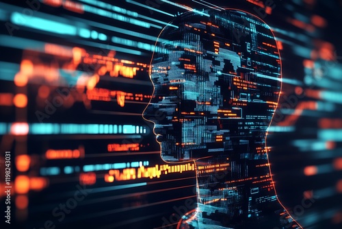 © The Little Hut, Obraz premium Digital Human Interface with Enhanced AI Visualization and Programming Codes : Generative AI