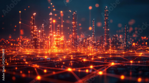 Fototapeta premium Digital icons on a holographic display representing smart city infrastructure and industrial connectivity