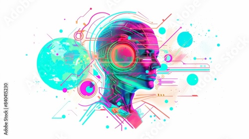 © MoriMori, Fototapeta premium Digital illustration featuring a neon cyberpunk android