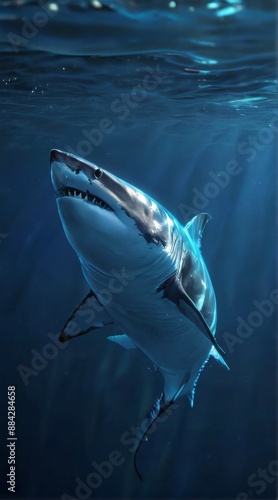 Fototapeta premium digital illustration great white shark swimming ocean shown