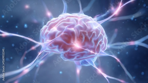 Fototapeta premium Digital illustration of a brain with vibrant neural connections, symbolizing...