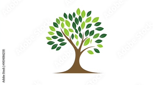 © Rstm, Fototapeta premium Digital illustration of a tree with numerous green leaves and a brown trunk and base.