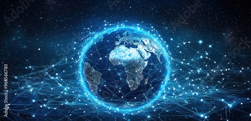Obraz premium Digital illustration of Earth surrounded by interconnected global network of...