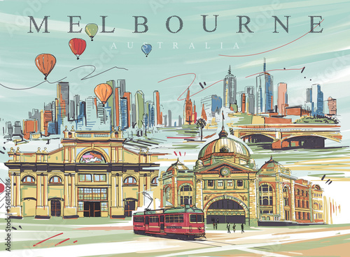 © Art Vision, Obraz premium Digital illustration of iconic places in Melbourne.