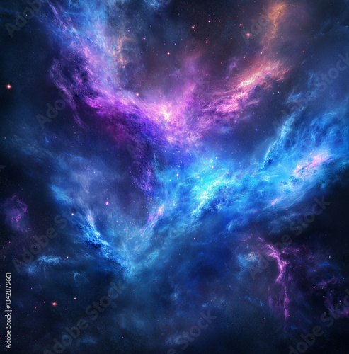 Fototapeta premium Digital illustration of vibrant blue and purple nebula in deep space