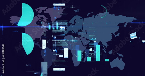 Obraz premium Digital image of digital interface with data processing against world map on...