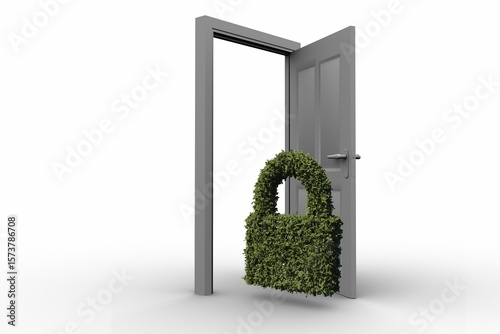 © vectorfusionart, Naklejka premium Digital image of padlock of topiary at doorway