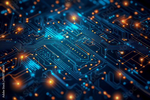 © Outsiderzone, Obraz premium Digital Innovation: Abstract Circuit Board Design in Stock Photo Style