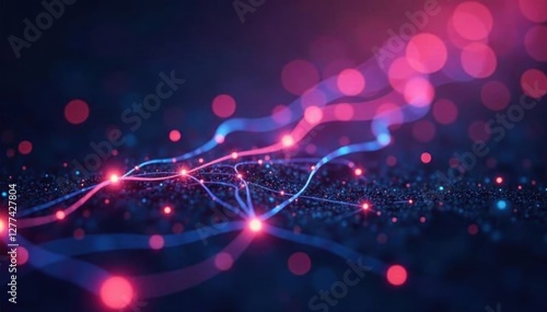 © Kulanan, Obraz premium Digital interconnected nodes, glowing streams, white space , vibrant, network