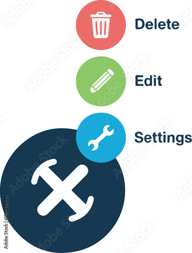 Obraz premium Digital Interface Element with Settings, Edit, and Delete Options Displayed