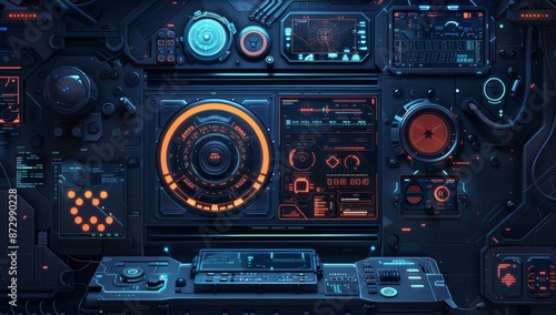 Fototapeta premium Digital interface of a shuttle spacecraft. Aim system. Futuristic aiming...