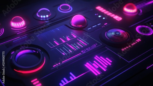 © Rere_Art151, Obraz premium Digital interface panel displaying various futuristic graphical and physical controls
