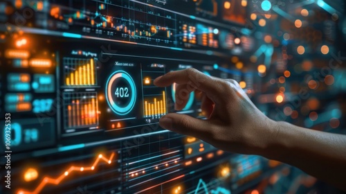 © harryaishi, Obraz premium Digital Interface with Data and Charts