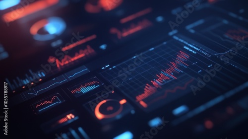 © marco, Obraz premium Digital Interface with Glowing Charts and Data