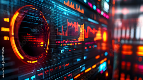 © Siasart Stock, Obraz premium Digital Interface with Red and Blue Glow Illustration