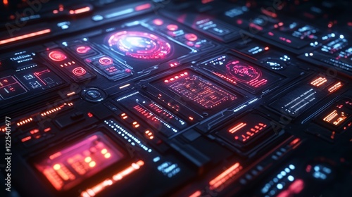 © EwaStudio, Obraz premium Digital Interface with Vibrant Holographic Technology Design