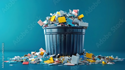 Fototapeta premium Digital Junkyard - 3D Model of Chaotic Virtual Trash Bin with Glossy Finish...