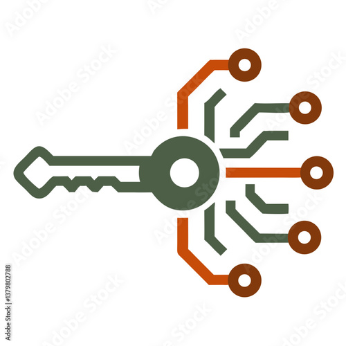 © Aronova, Obraz premium Digital Key Design with Circuit Patterns on White Background