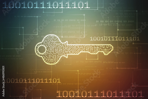 © Greentech, Naklejka premium Digital key icon protecting data personal information. Data protection privacy Concept, Information privacy internet technology, Key to success or solution, Cyber Security Concept