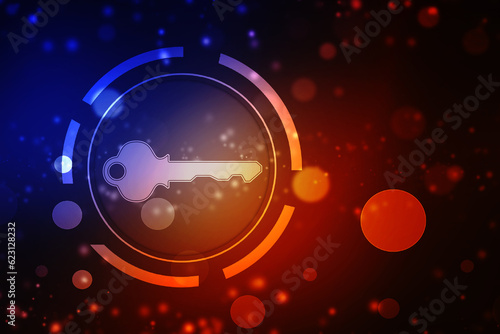 © Greentech, Naklejka premium Digital key icon protecting data personal information. Data protection privacy Concept, Information privacy internet technology, Key to success or solution, Cyber Security Concept