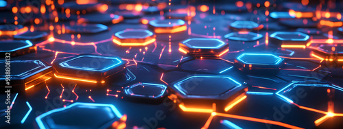 © Manuel, Obraz premium Digital Landscape with Glowing Hexagons
