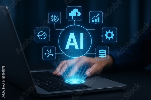 © Abdullah, Fototapeta premium Digital Laptop with Glowing AI Projection