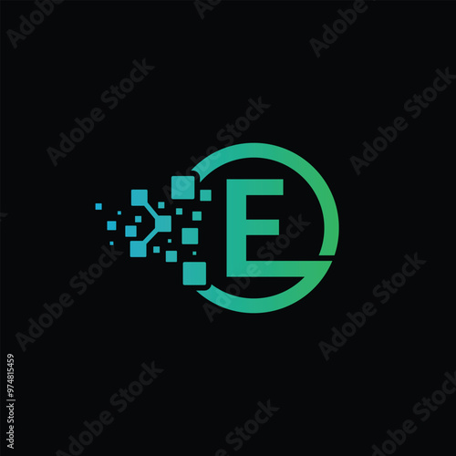 © kajolography, Obraz premium Digital letter E Tech Logo Design in circle, Letter E technology template