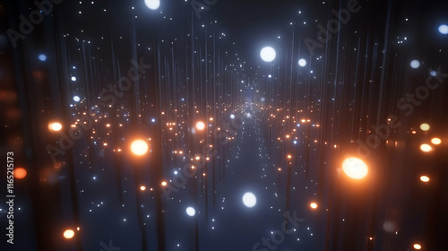 Obraz premium Digital Lightscape, Glowing orbs cascade through dark space, creating a...