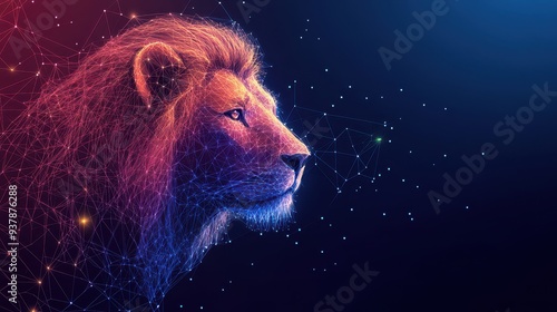 © Stock Avenue, Naklejka premium Digital lion silhouette made of interconnected points and lines