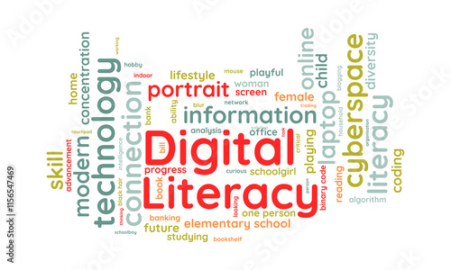 © Rana, Obraz premium Digital Literacy word cloud template. Digital Literacy concept vector tagcloud background.