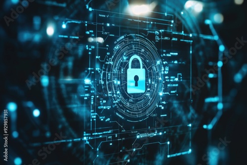 © Alexandr, Obraz premium Digital lock on computer screen