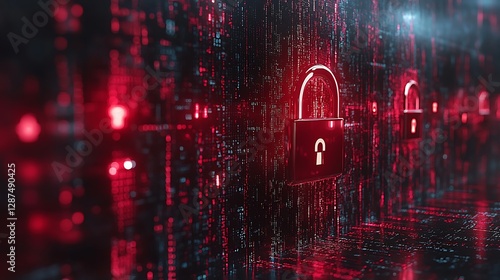 © Lin, Obraz premium Digital locks in a cyber security wall