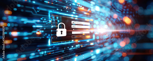 © patcharida, Obraz premium Digital login prompt, glowing holographic screen, hightech security