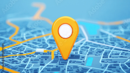 Fototapeta premium Digital map interface featuring a pinned location, showcasing a flat design aesthetic, emphasizing clarity and user-friendly navigation elements.