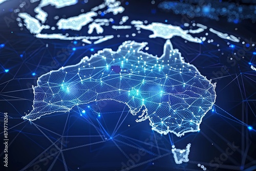 Fototapeta premium Digital map of Australia network and connectivity created with Generative AI