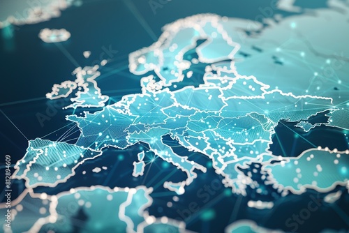 © ChickyKai, Fototapeta premium Digital Map of Europe with Global Network Connections,Global Network Overlay on European Digital Map