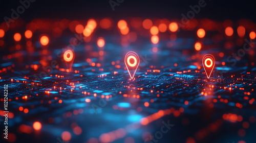 Obraz premium Digital Map with Glowing Location Markers in Futuristic City