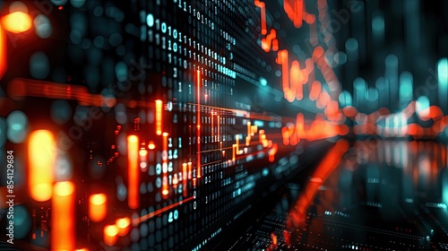 Fototapeta premium Digital Market Pulse. Stock market growth charts graphs 3d futuristic finance...