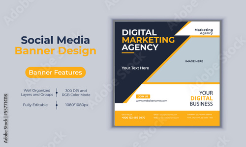 Fototapeta premium Digital marketing agency social media post banner design vector template...