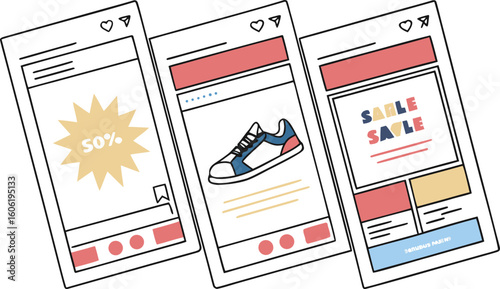Fototapeta premium Digital marketing campaign showcase featuring social media posts with sales promotions and product displays for online advertising
