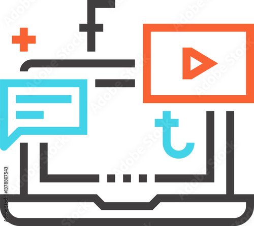 Obraz premium digital marketing flat line web icon concept