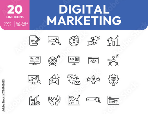 Fototapeta premium Digital marketing line icons with editable strokes for business and promotion