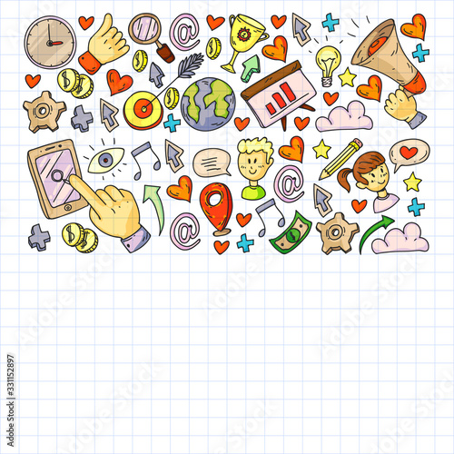 Fototapeta premium Digital marketing, social media, communications, management. Background for...