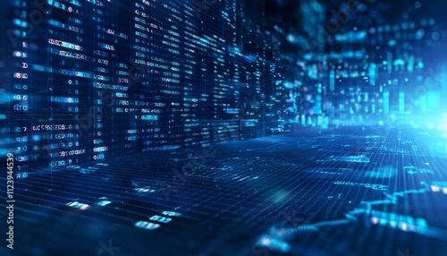 Obraz premium Digital Matrix: Abstract Blue Data Stream Tunnel