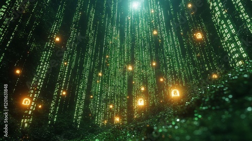 © Ummeya, Naklejka premium Digital Matrix Background with Glowing Padlocks.