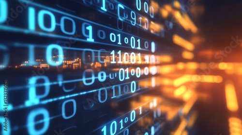 © Atchariya63, Obraz premium Digital matrix background with green binary code and glowing lights