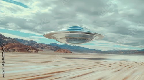 © jinzhen, Obraz premium Digital metal flying saucer desert scene poster background